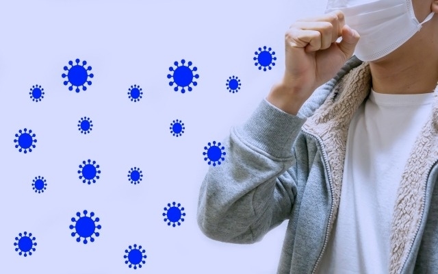 感染者が咳やくしゃみをすると、微細な飛沫が空気中に飛び散り、それを吸い込んだ他者に感染が広がります。
