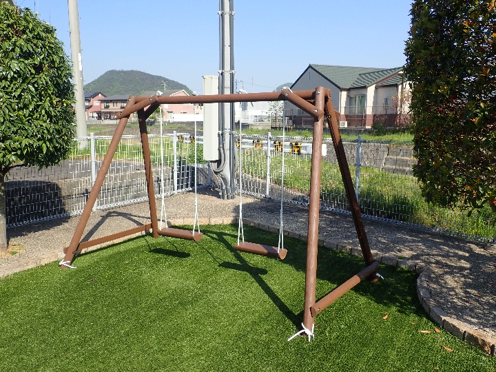 ドックランの木製ブランコが7年程経過し老朽化したので安全のため新しい物に交換しました。待ち時間に遊んでください。