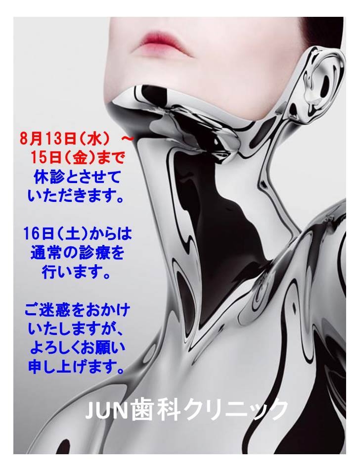 8月13日(水)~15日(金)まで休診とさせていただきます。16日(土)からは通常の診療を行います。ご迷惑をおかけいたしいますが、よろしくお願い申し上げます。