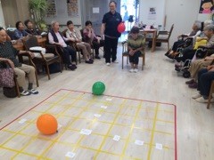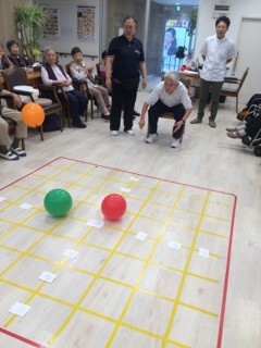 今日も台風の影響か朝からムシムシとして暑くなりましたが午後からは、上肢運動兼ねて風船ダーツをしました