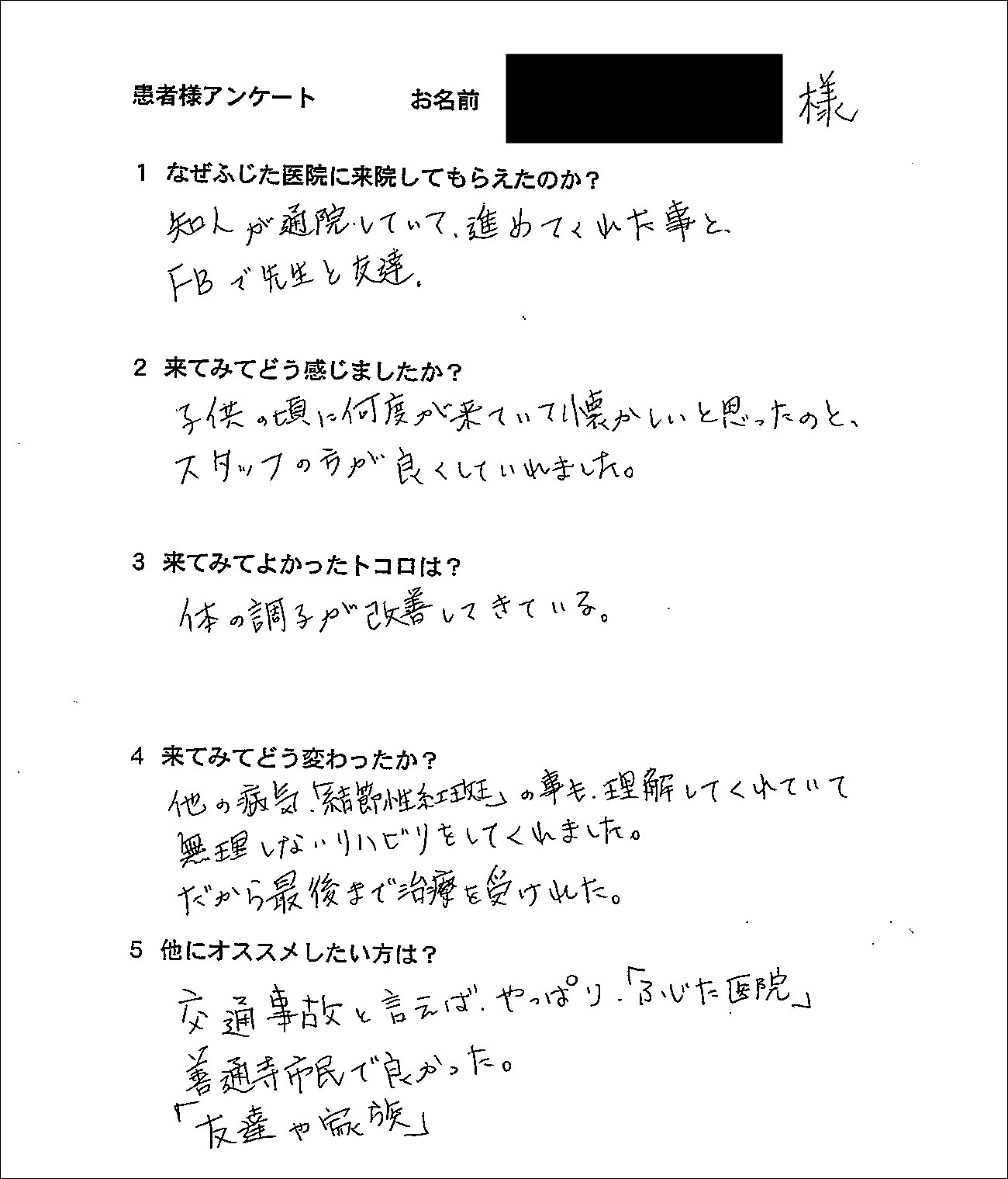 知人が通院していて、勧めてくれた事とFBで先生と友達。