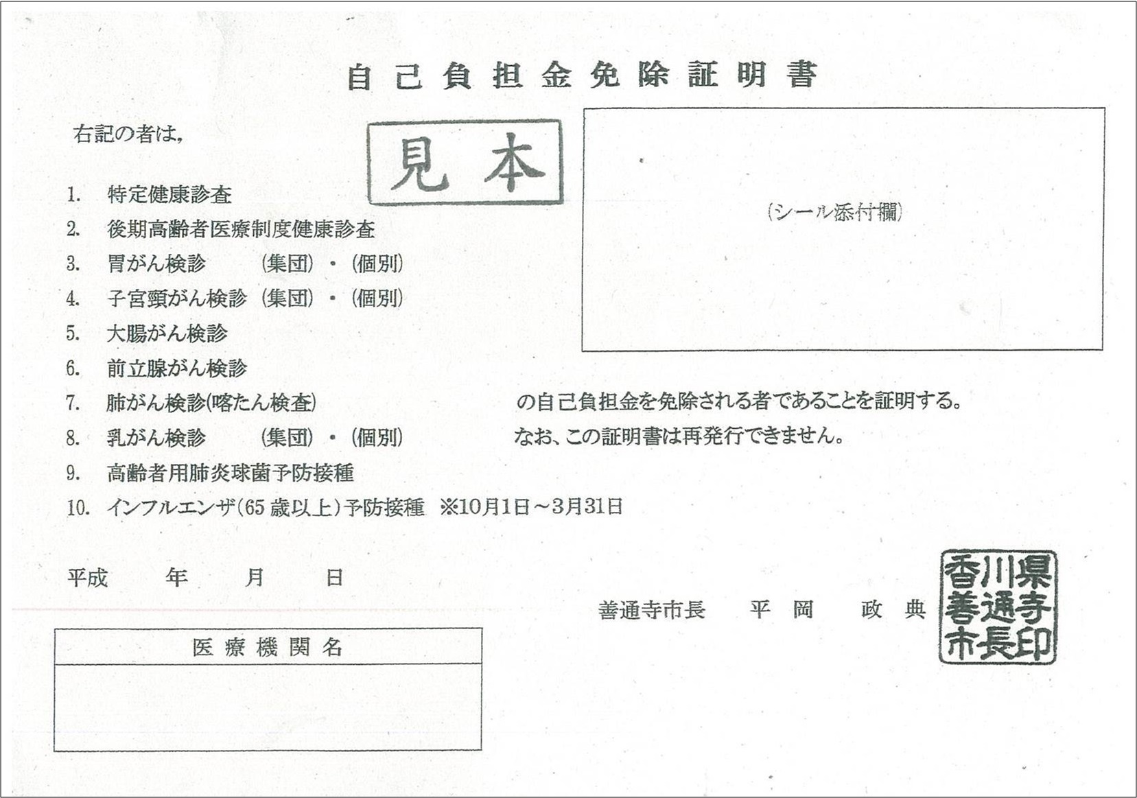 ↓該当される方はこちらの自己負担金免除証明書をご持参ください。