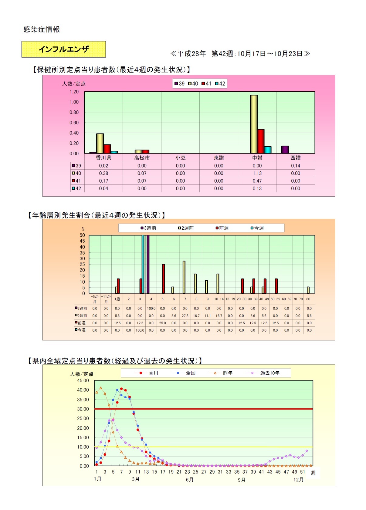 ただいまの香川県のインフルエンザの流行状況をお知らせします。