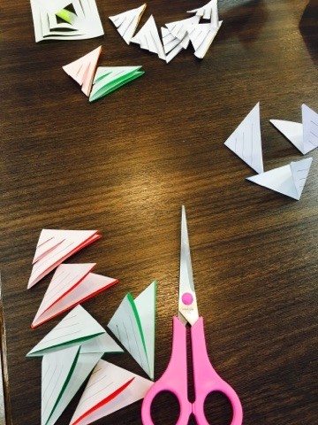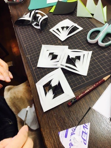 皆様で切って貼って頂いて、雪の結晶もたくさん出来てきております!