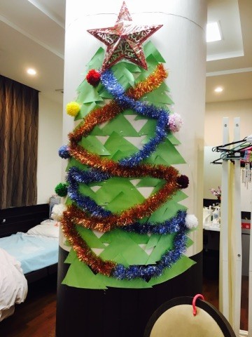 壁にはクリスマスツリーを作り