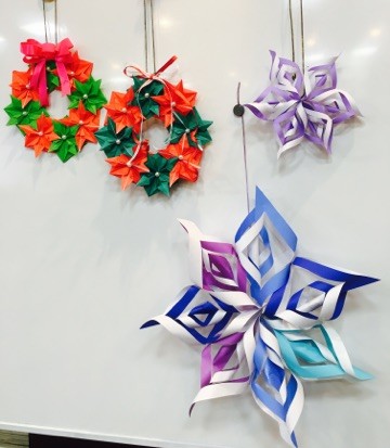 様々な色で雪の結晶も作って頂いております!