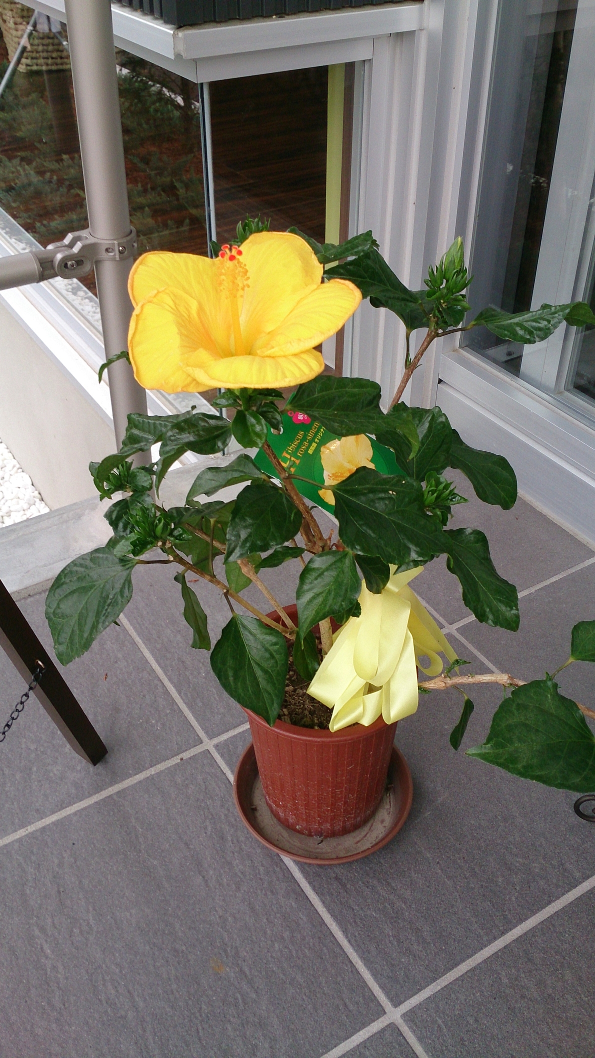 さて、開業祝いで頂き、クリニックで育てております『ハイビスカス』がついに開花いたしました。