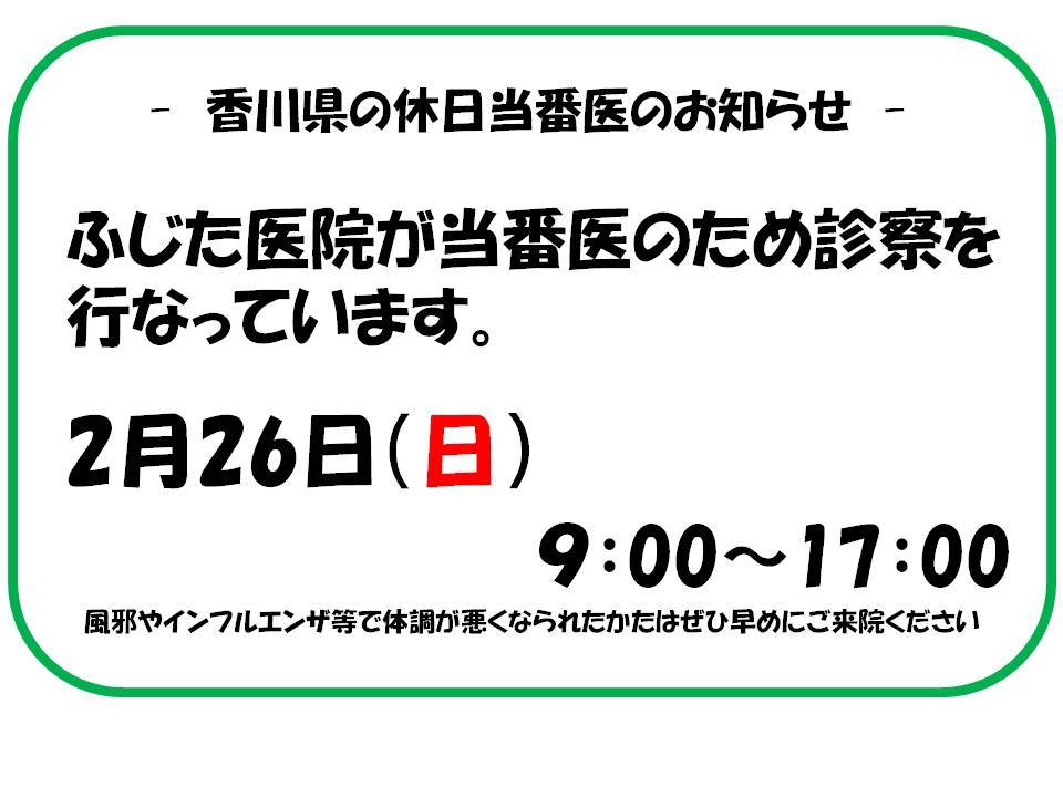 2017年2月12日 日曜日 香川の病院 休日当番医の最新情報【2017年2月12日記事を更新】