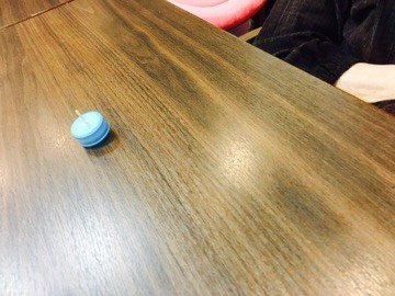 ペットボトルのフタにシールを貼ってコマのように爪楊枝を指して皆様に作っていただいた後に、たくさんコマを回していただきました!!
