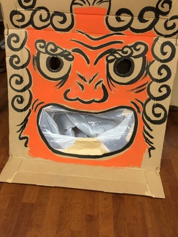 この日のレクでは、スタッフの杉本があらかじめ作ったダンボールの鬼の目玉や口に玉をたくさん入れて退治していただくゲームでした!!