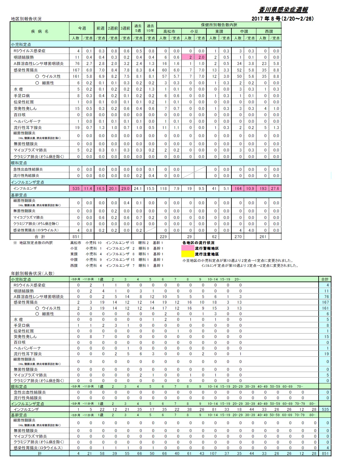 香川県のインフルエンザ流行情報