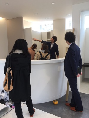 といっても、実は徳島のゆめタウンに職人さん取られちゃった?とのことで、一部床が貼れていないというトラブルもありましたが、スタッフや関係業者と、機材置き場の確認や机の高さなどの最終確認を行いました。