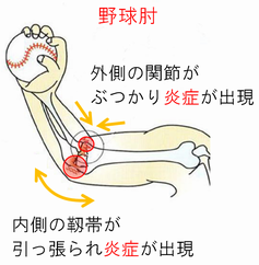 もしくは、肩の痛みをかばって投げているうちに、末端の指に負担をかけ、肘を痛めてしまうこともあります。
