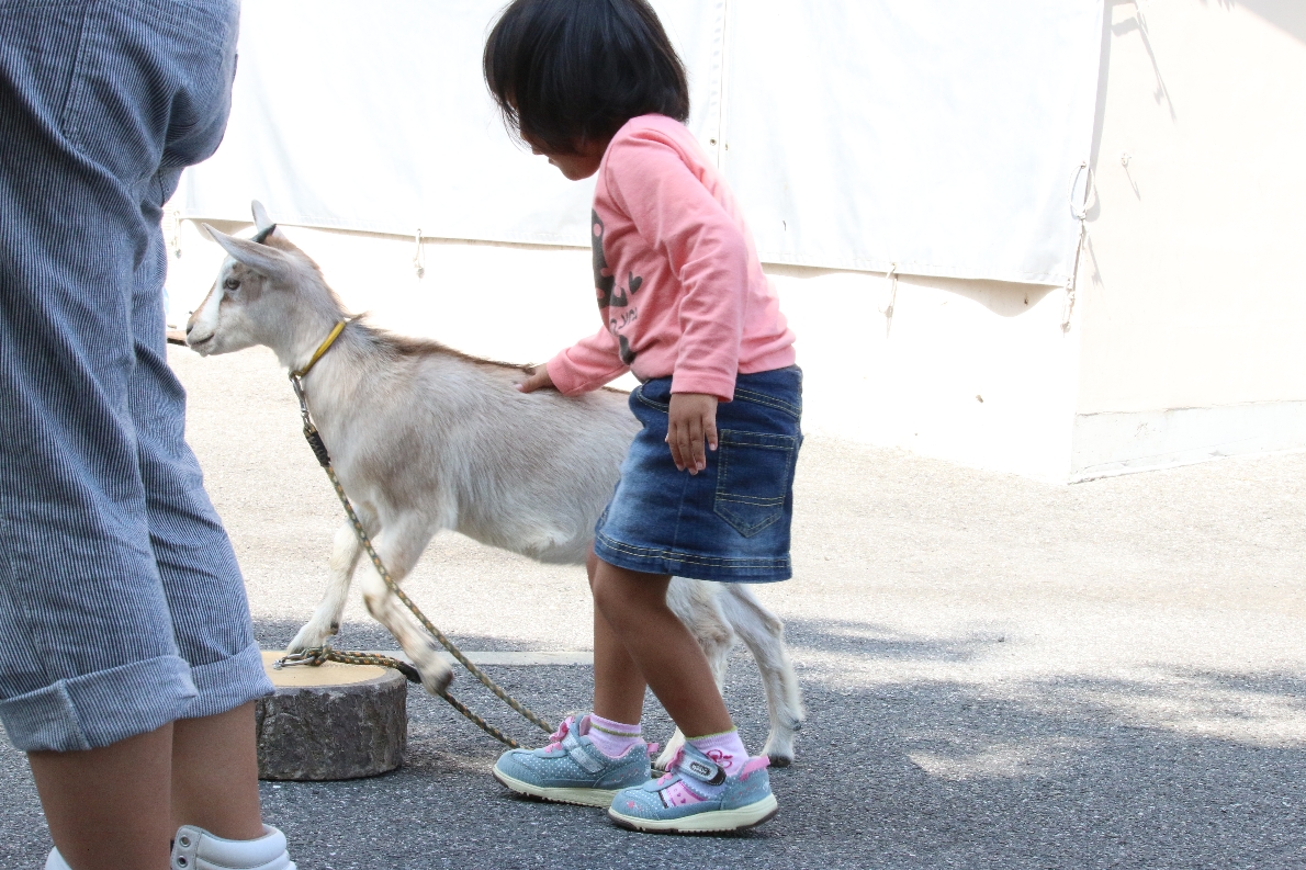 白鳥動物園様のご協力のもと、今年も移動動物園を開催することが出来ました。午前・午後で地元の保育所の子どもたちがきてくれたり賑わいました。