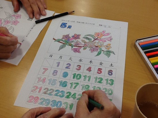 本日のデイサービスはカレンダー作りです。