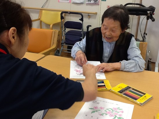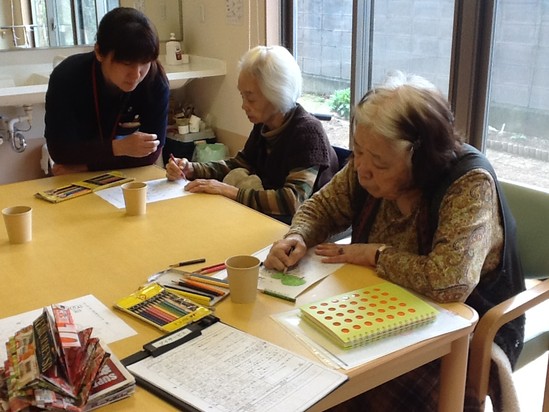 色鉛筆でお好きな色を使って、皆さま丁寧に色塗りされてますよ