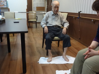 お客様にご好評なのが足の指でタオルをつまむというもの