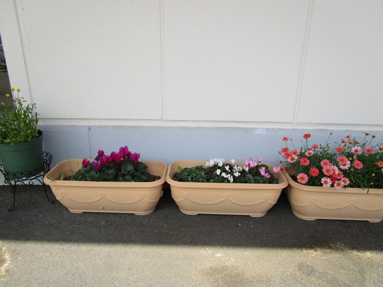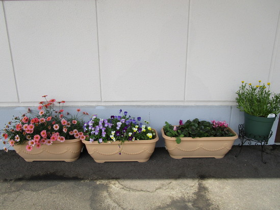 正面玄関を中心に、プランターを設置しています。