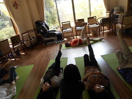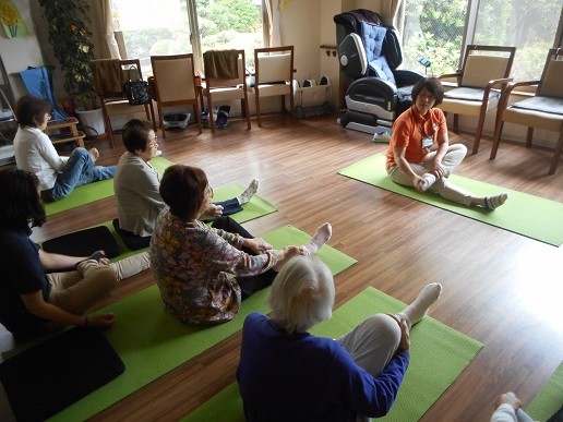 呼吸を意識しながら、ポーズをとったりストレッチも取り入れ行っていました。