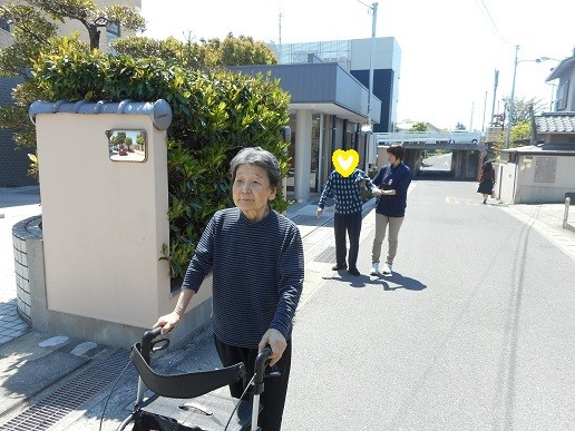 アルファデイサービスセンター後楽園では、外出の歩行訓練も好評です。アルファリビング岡山後楽園の外周を回ったり、近くの川や桜並木、岡山城と環境がとても良い場所にるのでこの時期を楽しみにされています(^^♪