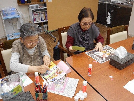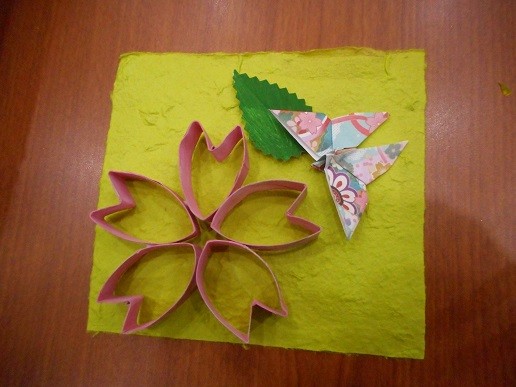 午前中は手作業として、桜の壁飾りをつくりました。