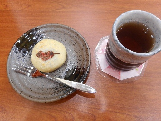 お正月にお出しした桜茶を塩抜きし、白玉粉とあんこで作ってくれました。