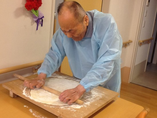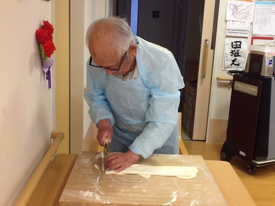 小麦粉に塩水を混ぜ合わせて、こねこね~ こねこね~
