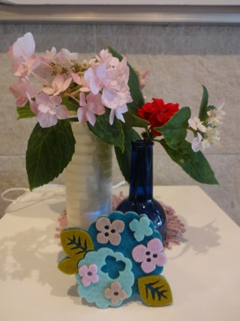 玄関にはフェルトの紫陽花も一緒にあります