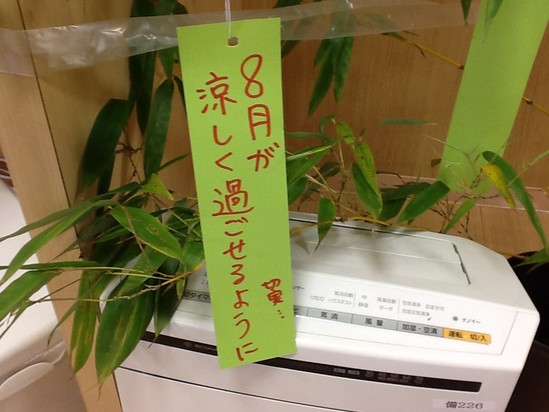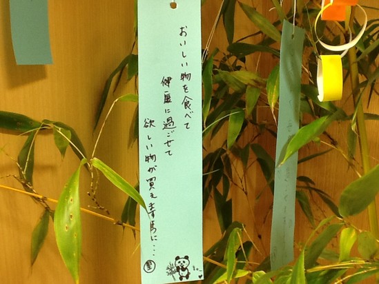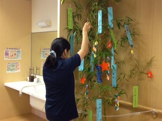 職員も願い事を短冊に込め、せっせと吊るしております。