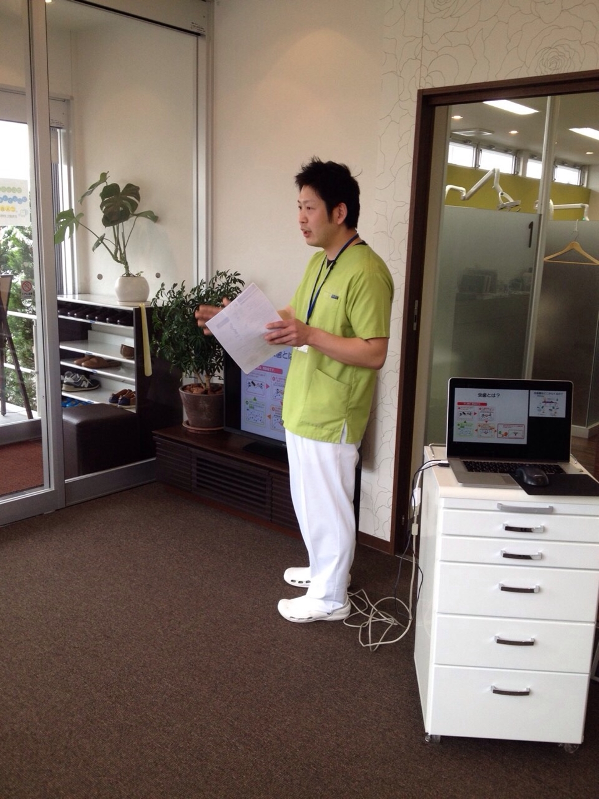 4月1日水曜日に、第1回『ワクワク親子教室』を開催いたしました。3組のお母様とちびっこにお越しいただきました。ご参加いただきありがとうございました。①虫歯のできる理由②年代別での歯磨きのポイント③フッ素を使って歯を強くするポイントや使い方④キットを使った虫歯リスクチェックなどなど・・・盛りだくさんの内容であっという間の1時間でした。定期的に開催していきますので、ぜひ皆様もお気軽にご参加下さい。もちろん参加無料ですよ!!