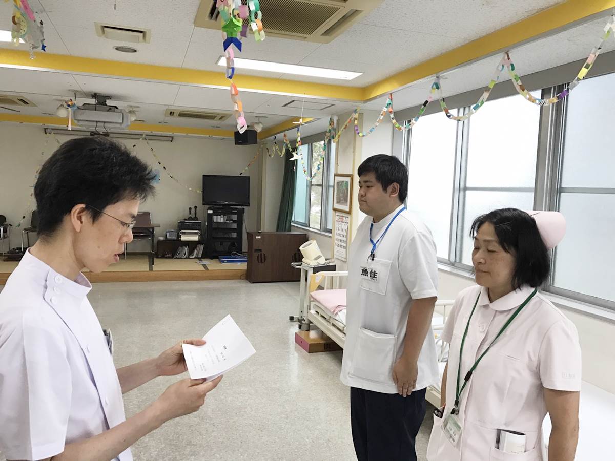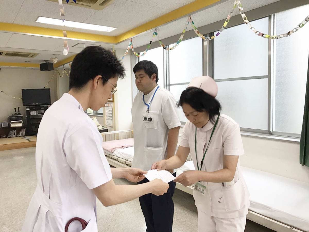 ふじた医院では月に1回、毎日朝の道路掃除、朝礼に参加した職員さんを表彰しています。