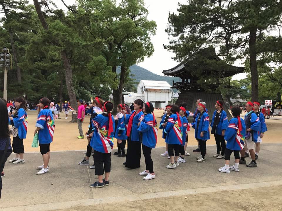 善通寺の境内に集合してみんなで最後の踊りの練習中です。