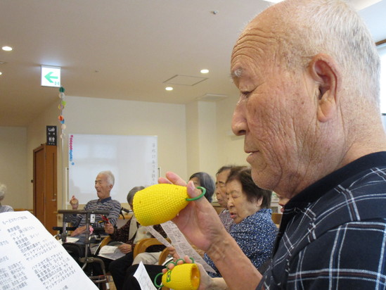 音楽を通して回想療法をおこなったり、楽器を使って脳を活性化させたりと