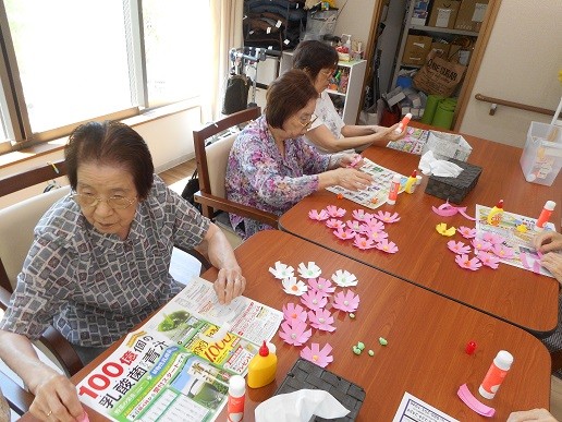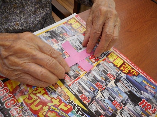 午前中、壁面に使用するコスモス作りをしました(^^)