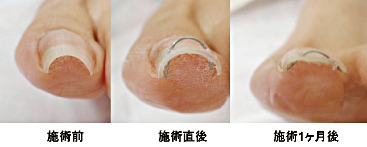 ◇深爪されていない陥入爪であれば、形状記憶合金・超弾性のマチワイヤ®(多摩メディカル製) を用いる方法があります。