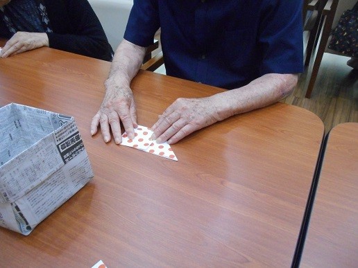 今回は、昔を思い出していただけるよう、鶴を折って頂きました(^^♪