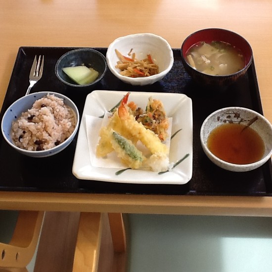 お昼はエンターさんの豪華天ぷらにお赤飯