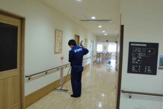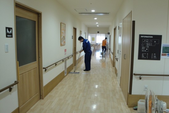 先日、グループ会社の一つ、あなぶきクリーンサービスさんによる施設の共用部のワックス掛けがありました。