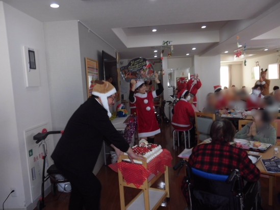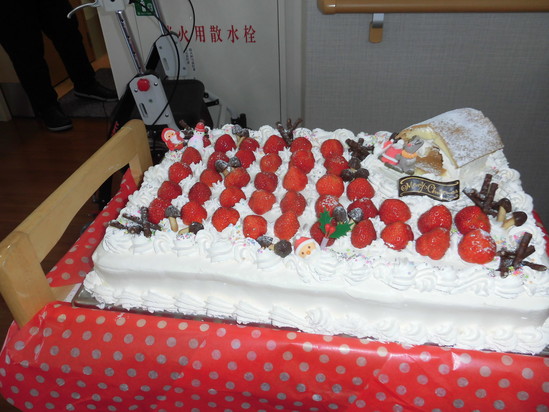 あなぶきエンタープライズのみなさんがクリスマスケーキもランチとともにつくってくださいました。サンタもお家もイチゴもとてもかわいらしくデコレーションされていました。味も絶品。たくさんランチをいただいた後にも大きなケーキをみなさん美味しそうに食べていました。みんなで食べるケーキは楽しいですね。サンタさんは、ケーキの上でも大忙し。