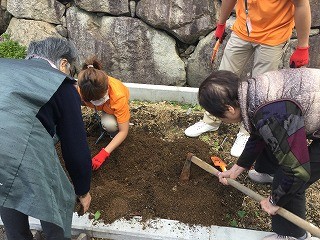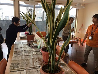 施設内の花の株分けを