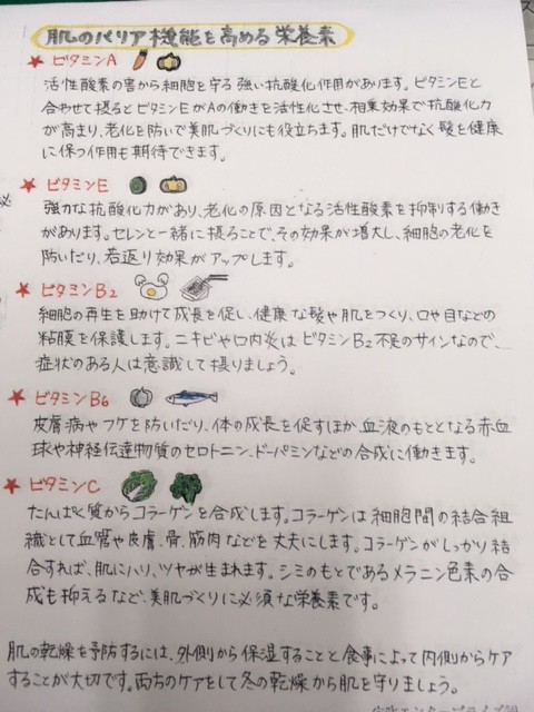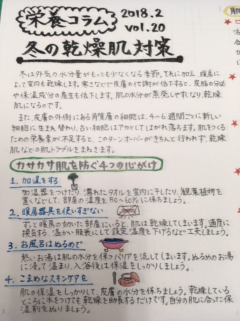 栄養コラム2月号を穴吹エンタープライズの栄養士さんよりいただきました。今回のテーマは、冬の乾燥肌対策です。