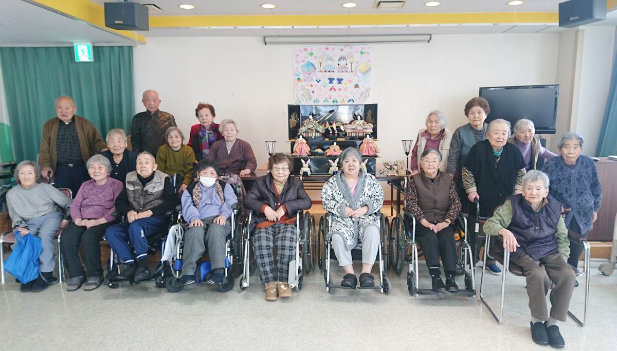 また、デイサービスでもお雛様を飾っています。当院のデイサービスは女性の方も多く、皆さんで集合写真を撮りました。