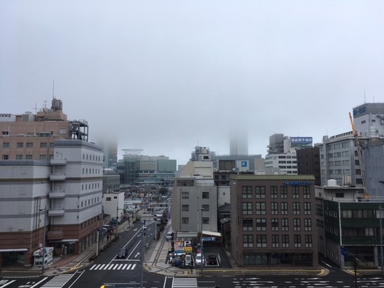 6階のレストランから高松駅前を見渡すとサンポートがいつも見えますが、今日の昼食後は、霧がかかってサンポートが半分見えませんでした。サンポートのタワーを半分かくしてしまった霧、あたたかくなったり、寒くなったり、雨が降ったり、季節が春に変わろうとしているようです。6階のレストランを散歩や趣味の場として使っている方もいらっしゃいます。