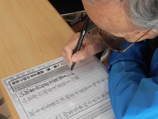 写経の用紙を目の前にしたら、自ら筆を持たれ、真剣に集中して取り組まれて、持つ能力のすばらしさを感じました。