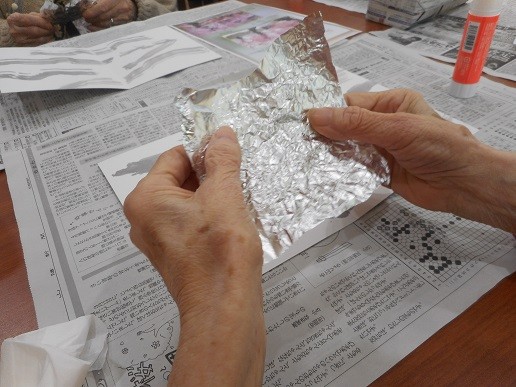 次に、アルミホイルで光沢を出していきます。
