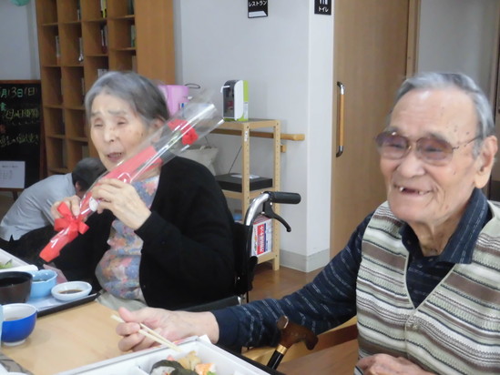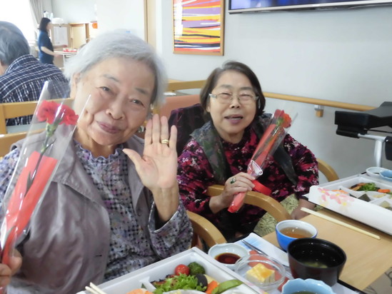 カーネーションを手渡すと笑顔があふれだします。みなさん、素敵な笑顔です。
