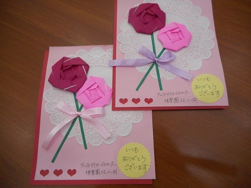 スタッフからご利用者様へお渡ししたく、カーネーションのカードを作りました(^^♪