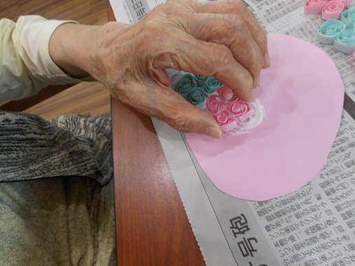 用紙をクルクルと丸めた物を、次々貼り付けていきます。