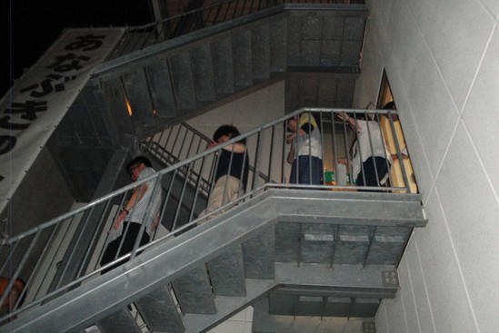 この段階では、外の非常階段での避難が、暗くて昼間の避難よりも危険が伴うことがわかります。(フラッシュを使用していないと真っ暗)