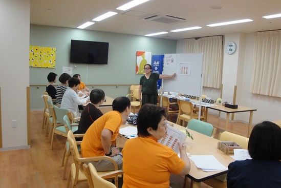 この写真は、講師役のスタッフが学会活動をしている内容から話をしていて、今回「口腔ケア」に関する内容でした。